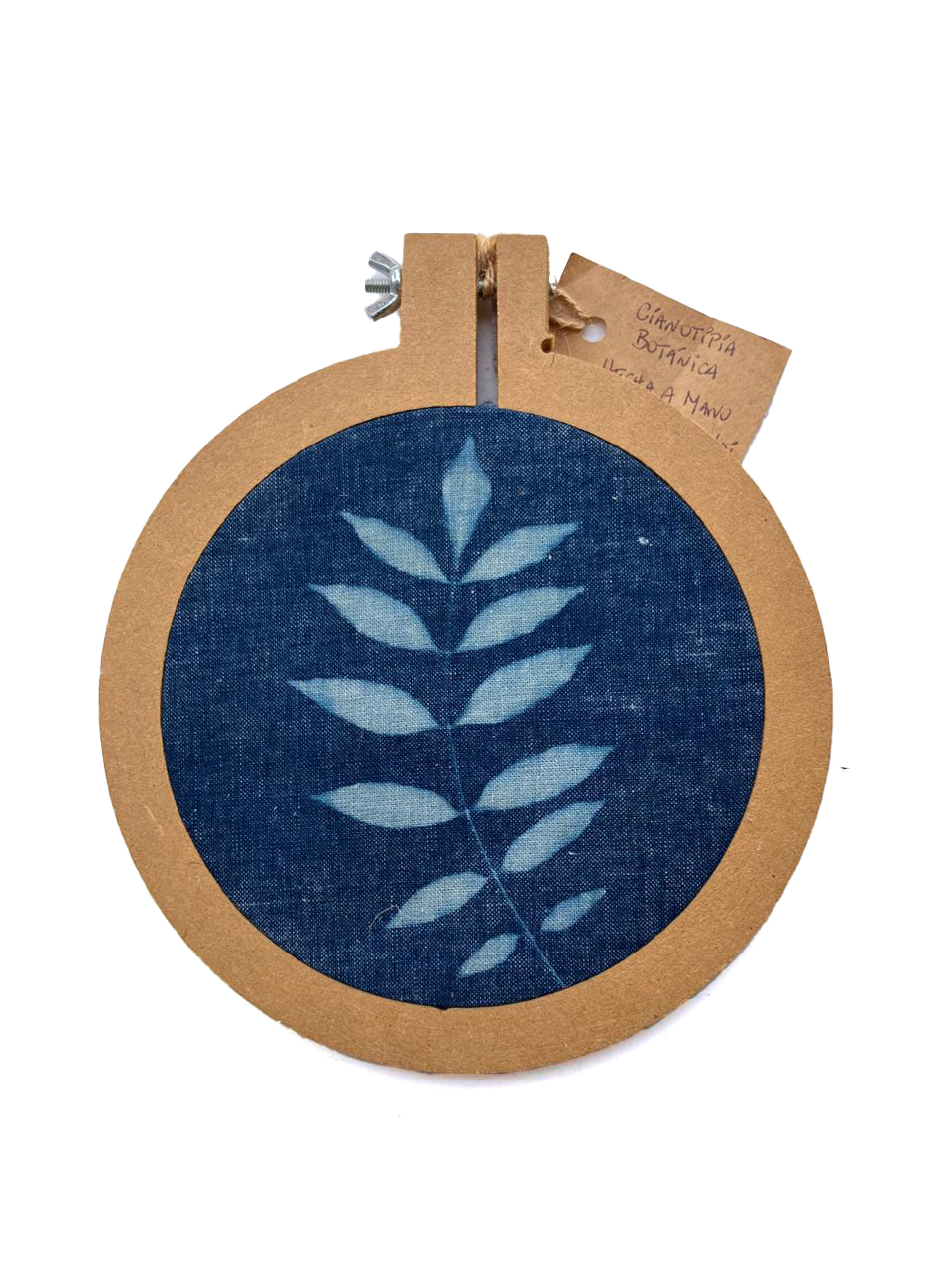 Cianotipia Botánica sobre tela de algodón con soporte bastidor.
