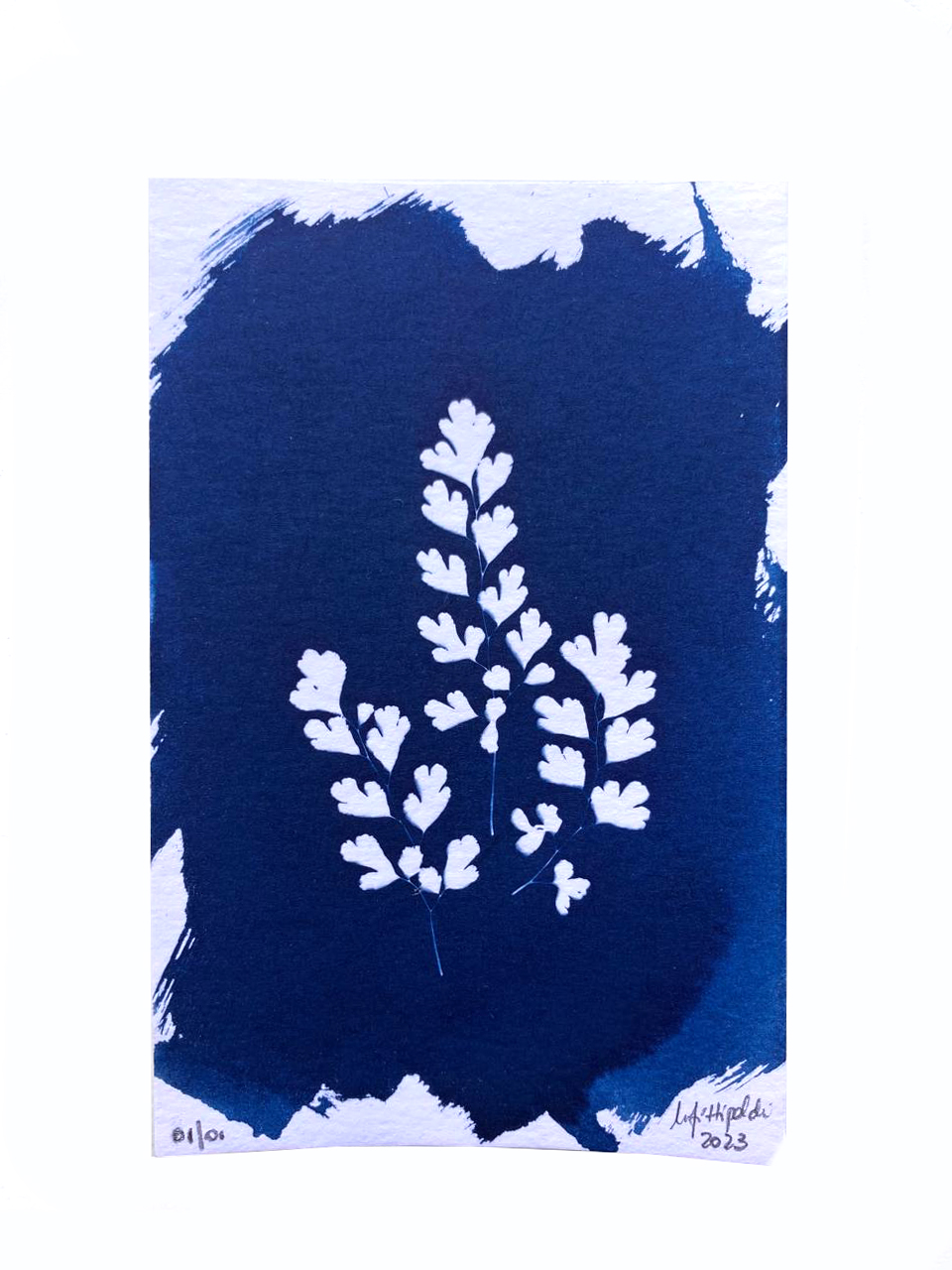 Cianotipia Botánica sobre papel de acuarela de 350 gr.